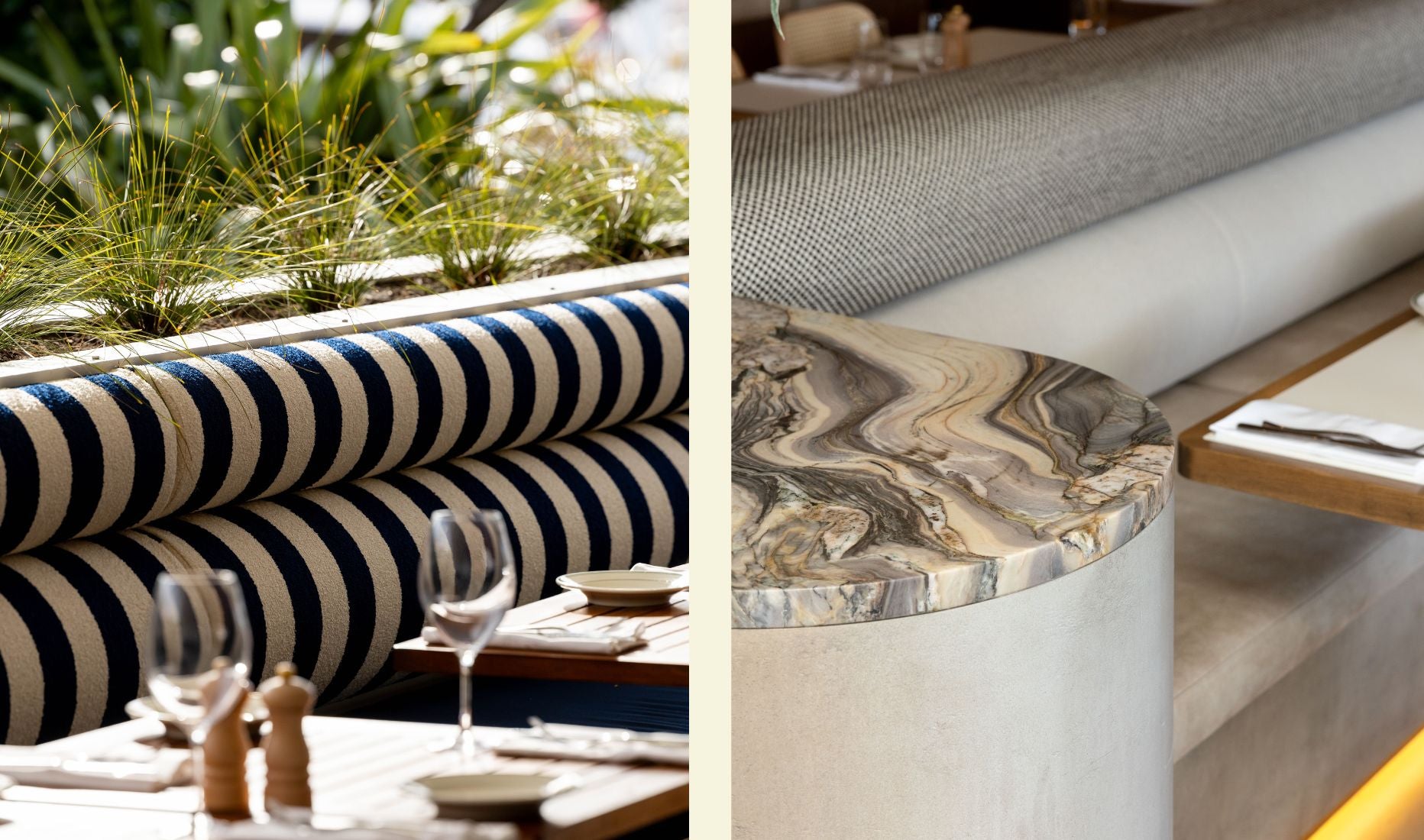 First Mates Last Laugh is a vibrant, waterfront bistro in Auckland’s Westhaven Marina, designed to offer a relaxed yet elevated dining experience. With just four months to transform the space, the design team rose to the challenge, crafting an environment that captures the essence of coastal living, blending New Zealand-inspired materials with an international LA beach club aesthetic.