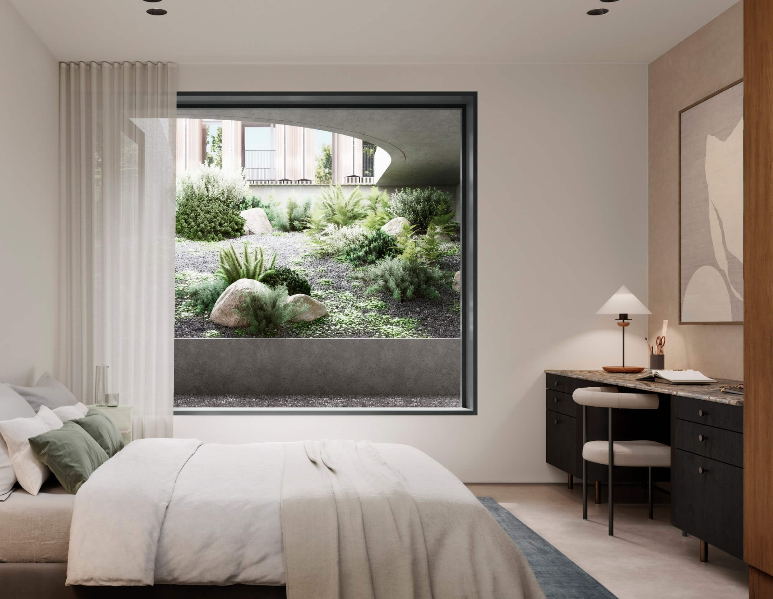 Inside, our design concept caters to the demands of contemporary living, featuring a robust and utilitarian selection of materials that is elevated by tasteful touches of playfulness and character, ensuring a welcoming and comfortable living experience for its residents.