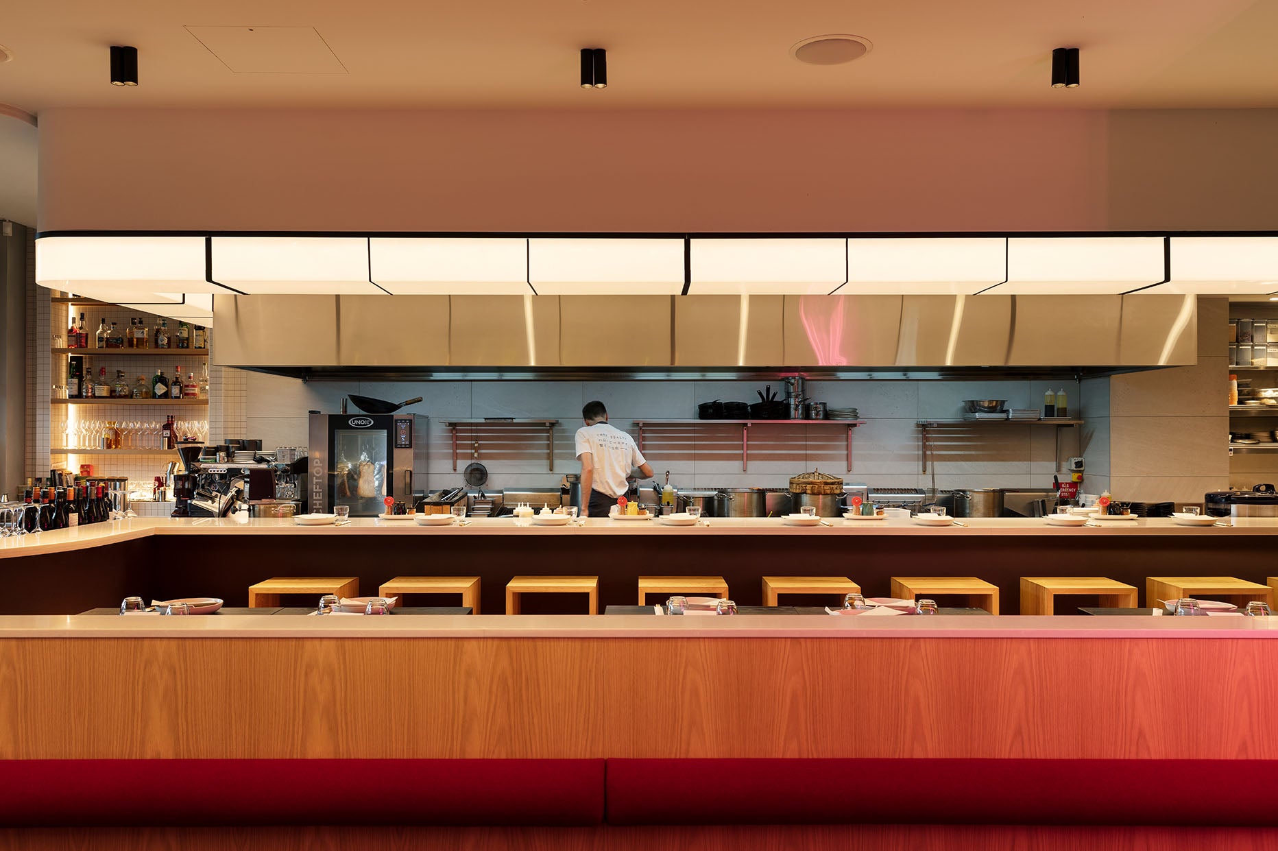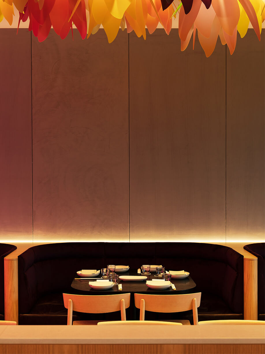 Hello Beasty was long-awaited by our clients, who had a clear vision for the dining experience they wanted to offer. They wished to create a lively, modern eatery fusing Korean and Japanese influences and were passionate about making a customer’s visit to Hello Beasty unique and unforgettable. Tasked with designing an interior to match the brand’s bold aspirations — a fun, vibrant, and authentic restaurant that holds the unexpected, the interior's first layer is a neutral Japanese palette of whites, oak timber, and soft textured grey walls, while the second layer injects deep red and aubergine tones reminiscent of the playful nature of Korean interiors.