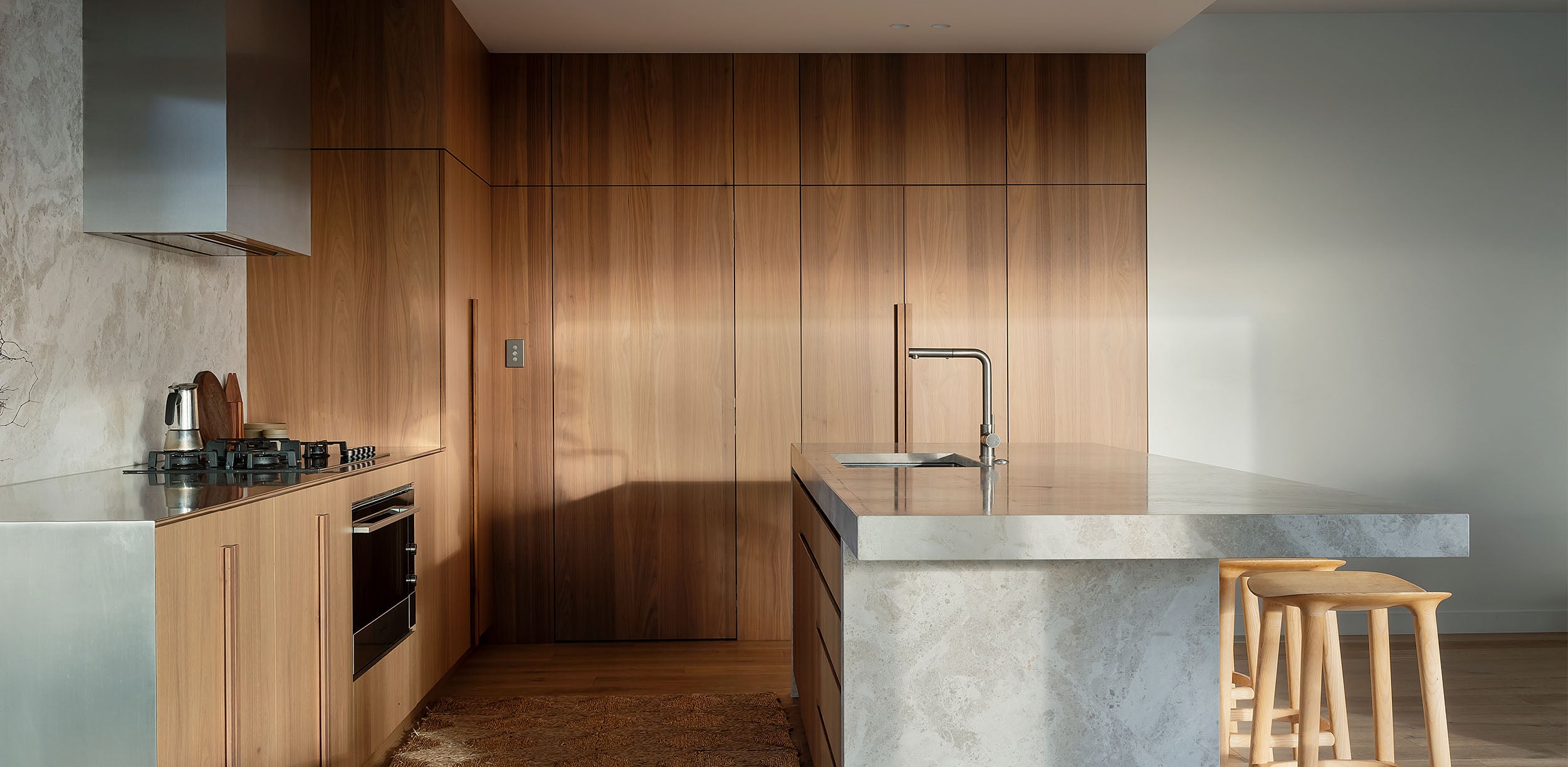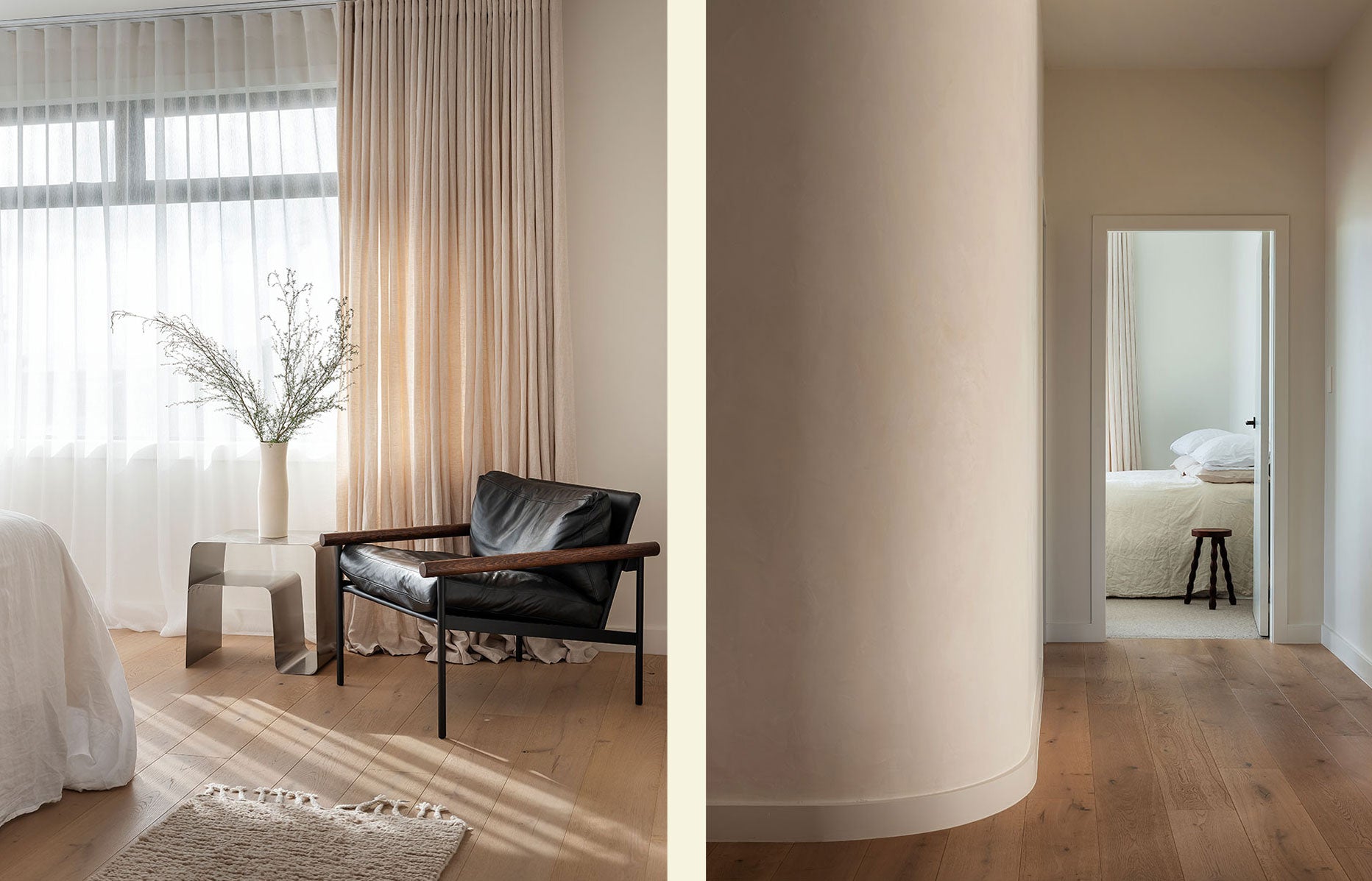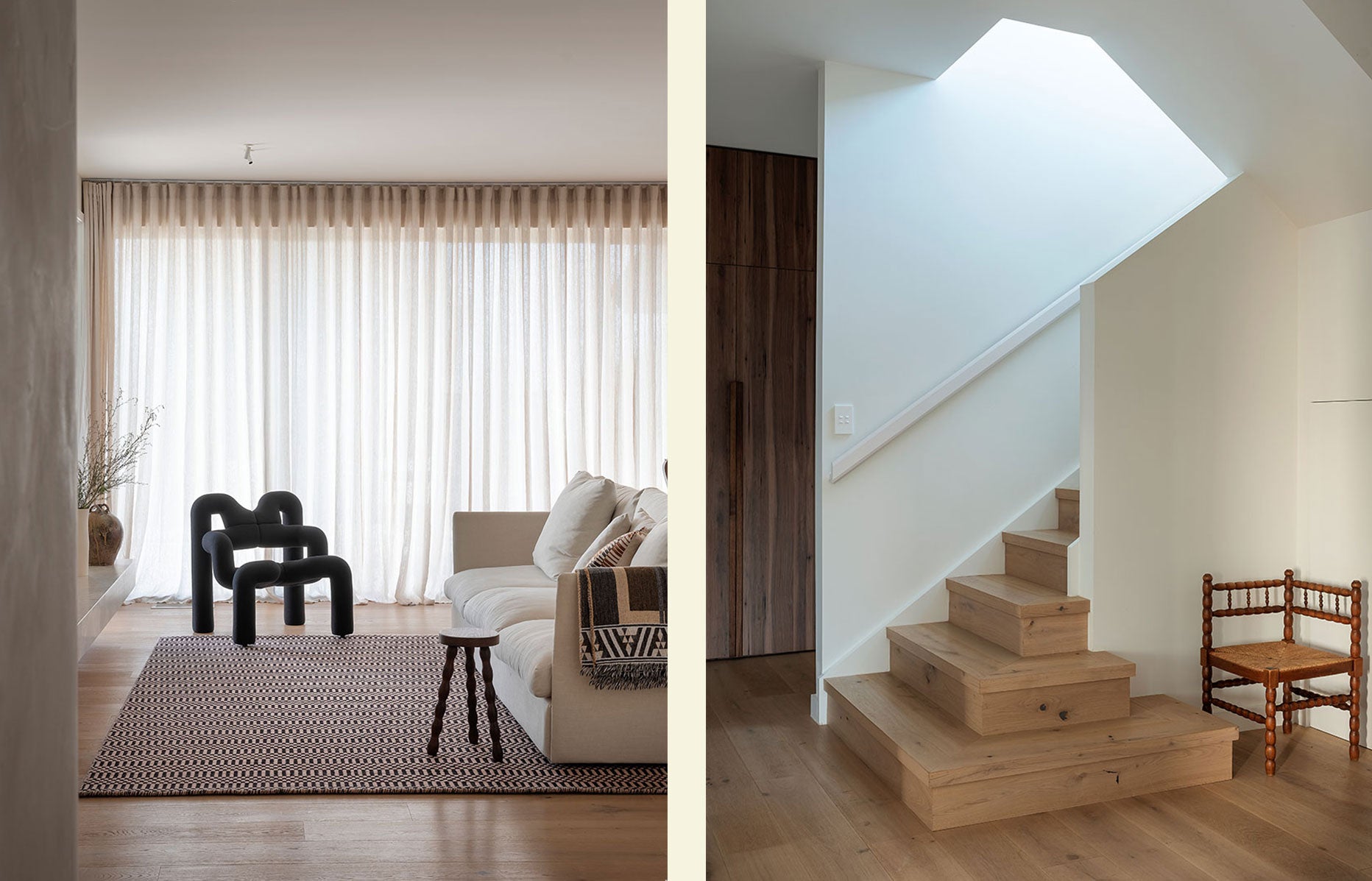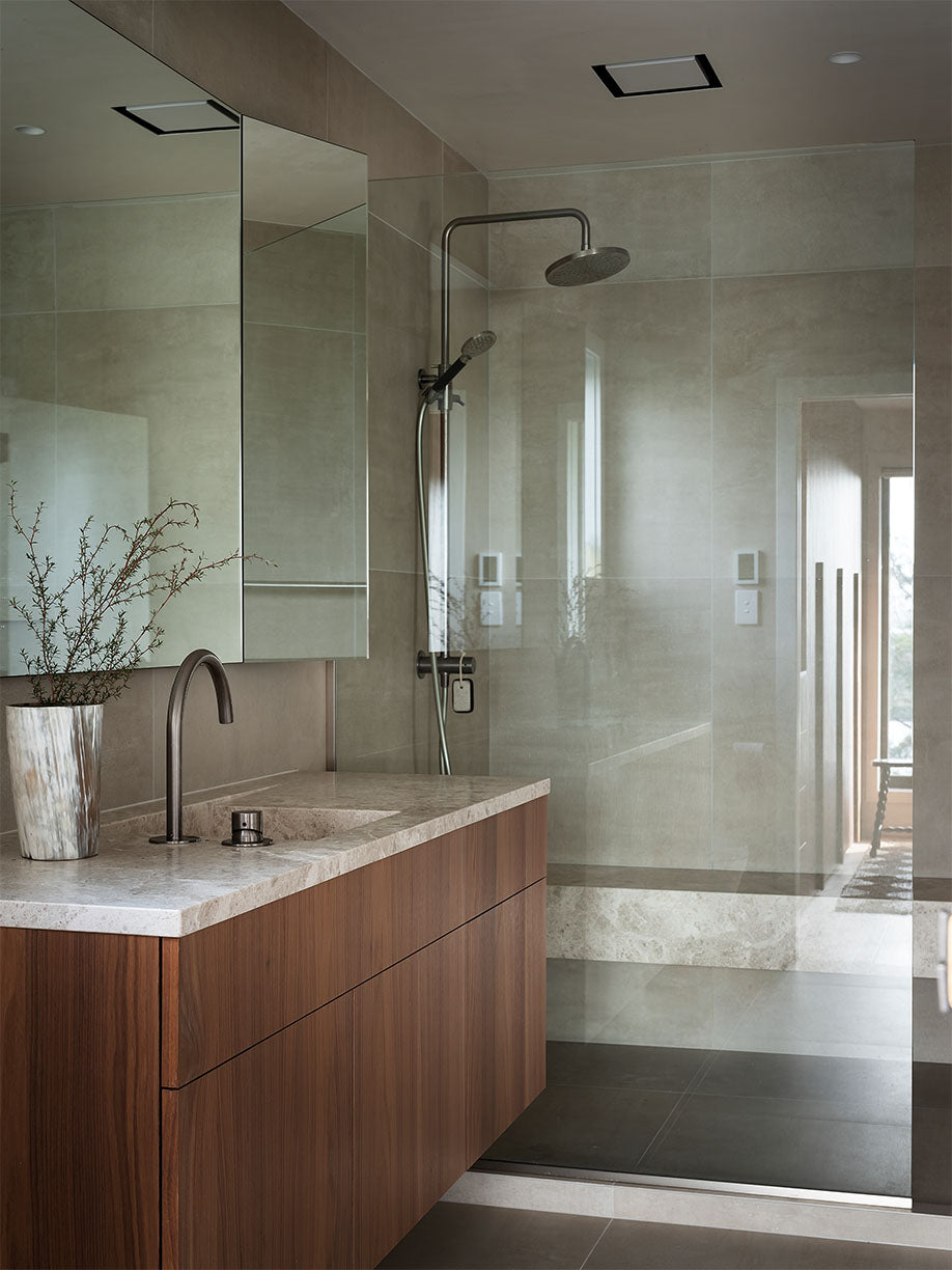 These references filter into the home via earthy tones combined with layers of texture and mixed materials, ensuring the spaces feel warm, relaxed and comfortable.