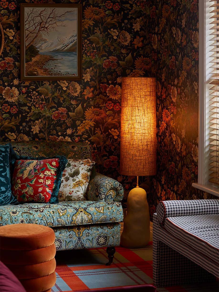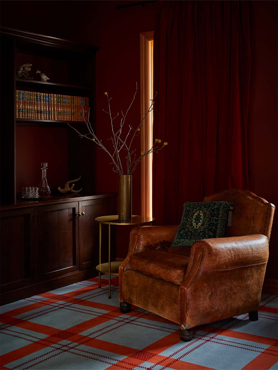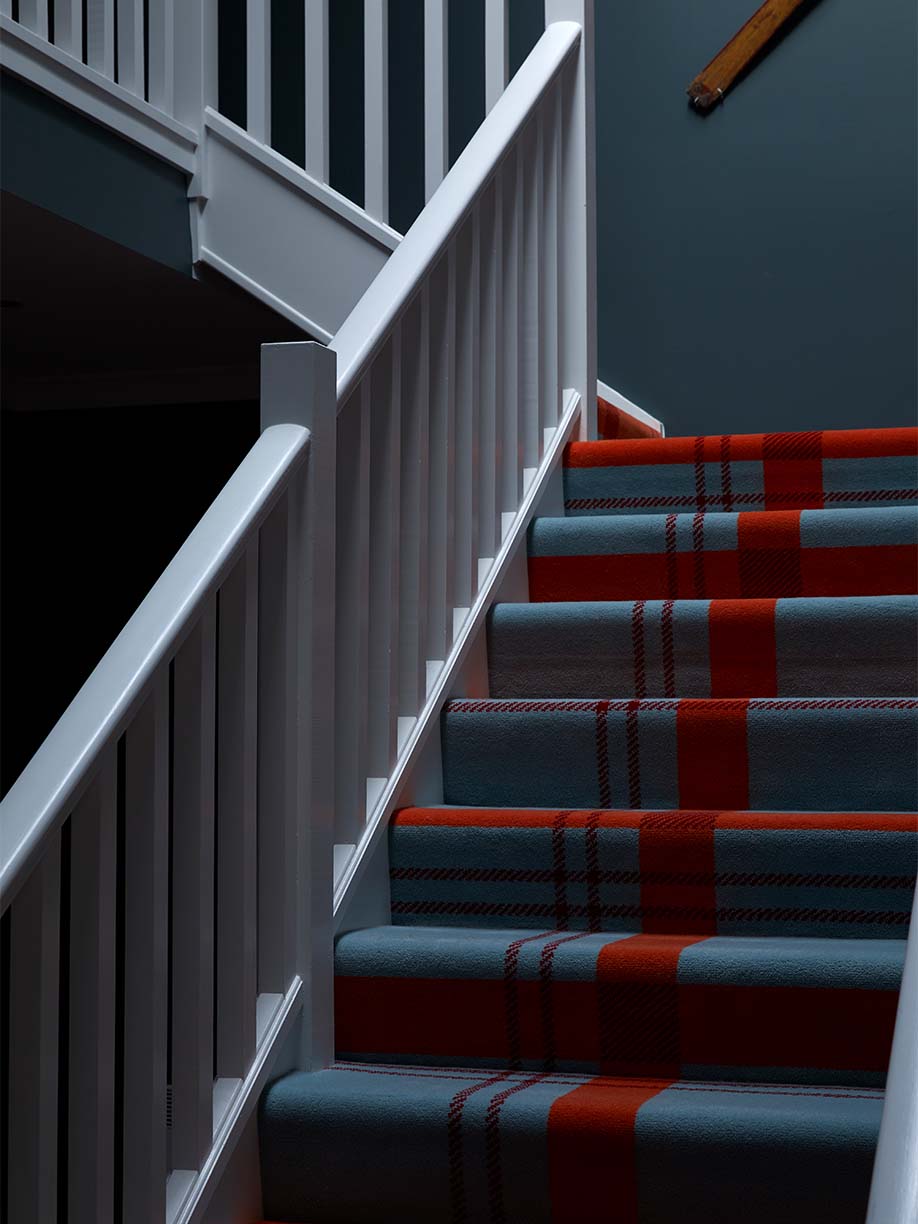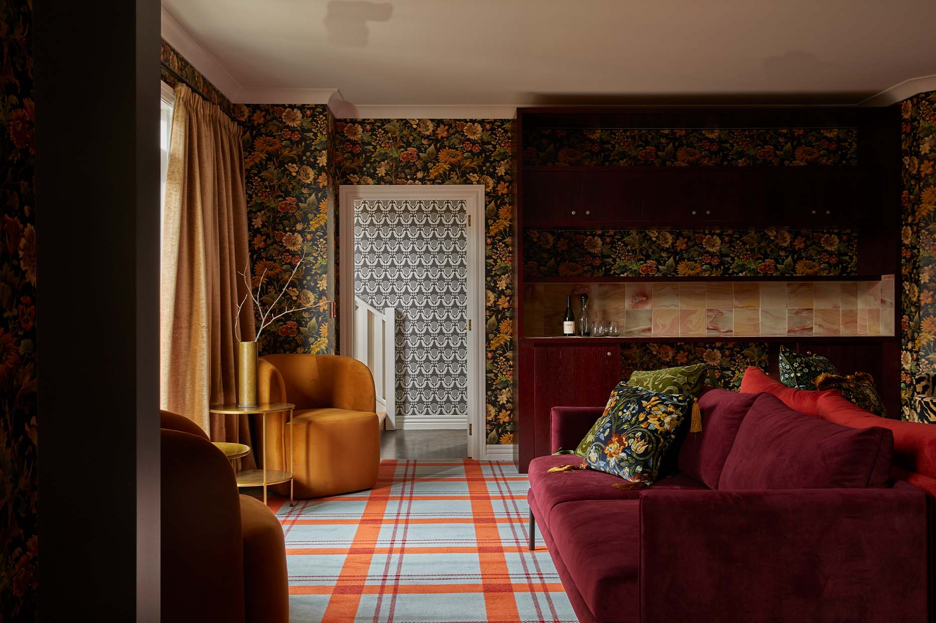 Exercising decorative freedom through craftsmanship, colour and unexpected details, our vision for The Dairy was realised not only through grand statements, such as the bold red and blue tartan carpet, but also through small gestures like vintage decorative collections and eclectic artwork.